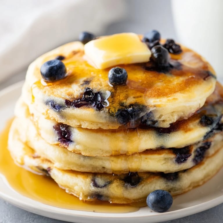 Save to Pinterest Sunday mornings at my place always started the same way—my roommate would drift into the kitchen following the smell of butter hitting a hot griddle, and suddenly a lazy morning became something worth waking up for. I grew up eating my grandmother's pancakes, thick and a little tough, but it wasn't until I experimented with barely stirring the batter that I understood what light and fluffy actually meant. The moment I folded in fresh blueberries and watched them sink just slightly into the batter, I knew this was the recipe that would become my signature move, the one friends would specifically request.