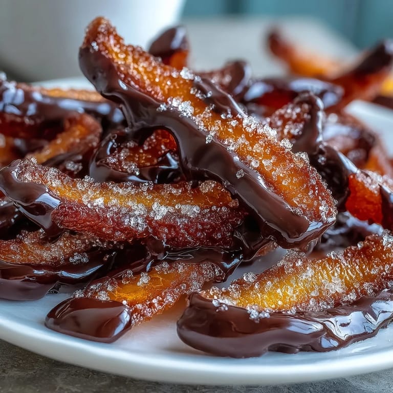 Save to Pinterest My sister arrived home one winter afternoon with a small box of candied orange peel dipped in dark chocolate from a fancy confiserie in the city, and I watched her savor each piece like it was spun gold. The combination of that bitter-sweet chocolate against the bright, chewy citrus made me realize this wasn't just candy—it was sophistication I could actually make at home. What struck me most was how the kitchen filled with that particular orange aroma during the simmering, a smell that felt almost luxurious for something so simple.