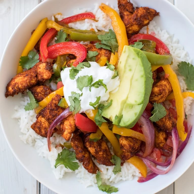Save to Pinterest There's something about the sizzle of chicken hitting a hot skillet that makes everything feel like dinner service, even on a random Tuesday in your own kitchen. I discovered this bowl while experimenting with leftovers and spice combinations, and what started as an improvisation became my go-to answer when someone asks what's for dinner. The magic isn't in any single component but in how they come together, each element crisp and vibrant against the warm, forgiving base of rice. It's the kind of meal that tastes like you spent hours planning when really you just needed thirty minutes and good instincts.