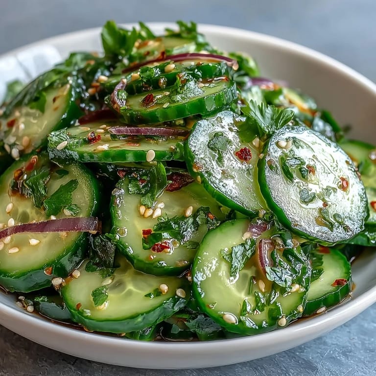 For the best texture, use a sharp knife or mandoline to ensure the cucumber slices are consistently thin. Allowing the salad to rest for the full 5 minutes helps the dressing penetrate the cucumbers for maximum flavor.