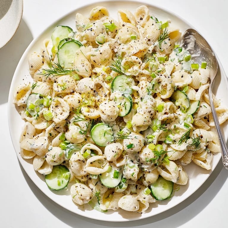 Save to Pinterest Whether served as a side at a barbecue or enjoyed as a light lunch, this Cucumber Crunch Pasta Salad is a crowd-pleaser that brings a crisp, savory twist to the classic creamy pasta salad format.