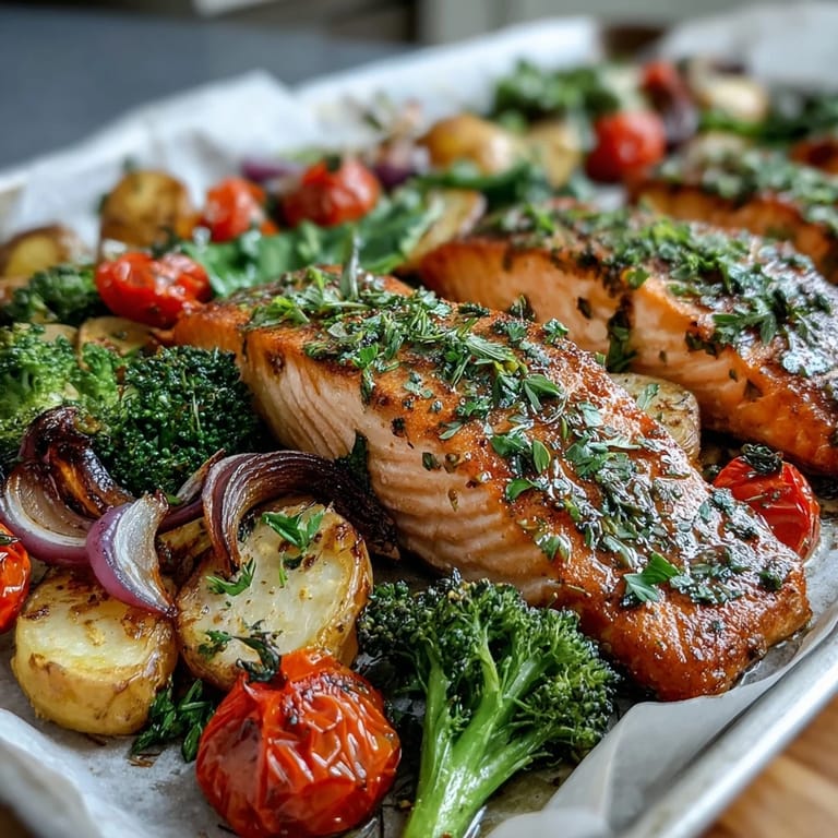 Save to Pinterest Wednesday nights used to mean takeout by default, until a friend mentioned she'd mastered sheet pan salmon in her tiny kitchen. I was skeptical—how could something so effortless actually taste restaurant-quality? Turns out, the trick isn't complexity; it's letting good ingredients do the work while the oven handles everything. That first time, I roasted salmon with those tangy mustard notes and watched the vegetables caramelize into something almost sweet. Twenty-five minutes later, dinner was ready, the kitchen smelled incredible, and I realized I'd stumbled onto something I'd make again and again.
