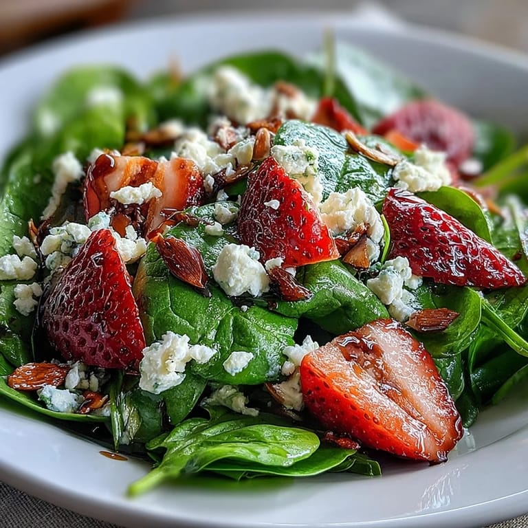 Save to Pinterest My neighbor knocked on my kitchen door one June afternoon with a basket of strawberries so ripe they stained her fingers red, and suddenly I understood why people get excited about farmers markets. She stayed for lunch, and I threw together whatever looked good—spinach, those perfect berries, some crumbled feta I had on hand. That casual salad became the thing she asked me to bring to every gathering after that. Now I make it without thinking, but I still remember how surprised we both were at how simple it felt to make something so vibrant.
