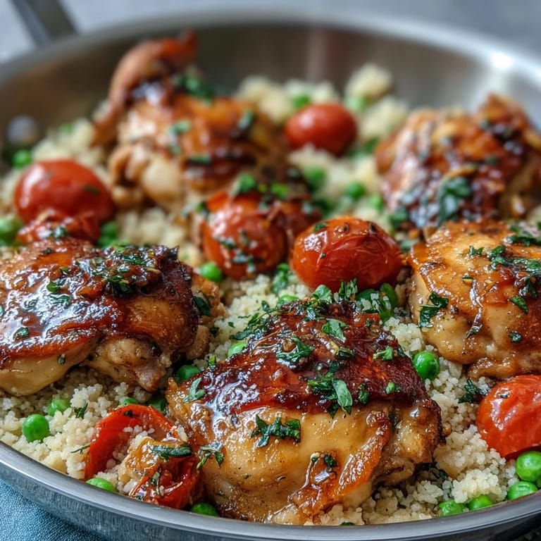 Save to Pinterest There's something magical about the moment when you pour chicken broth into a hot pan and watch it pull up all those golden, caramelized bits stuck to the bottom—that's when you know you're making something genuinely delicious. I stumbled onto this one-pan chicken couscous on a Tuesday night when I had exactly 35 minutes and a fridge that needed clearing. The beauty of it isn't just that it comes together so quickly, but that every element—tender chicken, fluffy couscous, fresh lemon—somehow ends up tasting like it's been simmering for hours.