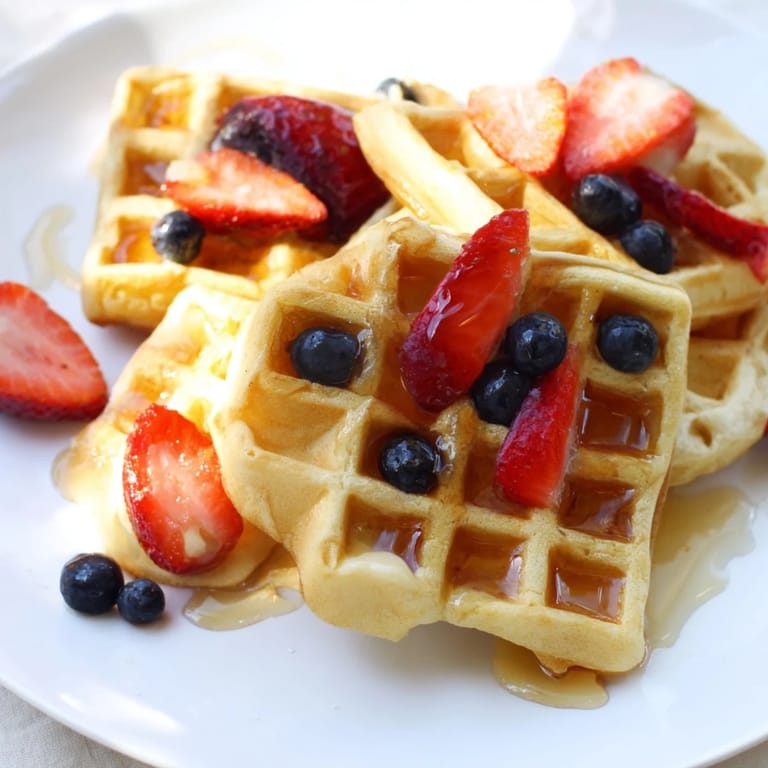 Save to Pinterest My waffle iron sits in the back of my cabinet most mornings, but on weekends it comes alive. There's something about the sound of batter hitting hot plates and that golden steam rising up that makes my kitchen feel purposeful. I stumbled onto this recipe years ago after burning the edges while undercooking the centers—turns out the secret isn't fancy ingredients, just respecting the simple balance of butter, eggs, and restraint. Now when that little light blinks, I know I'm about three minutes away from something crispy that tastes like comfort.