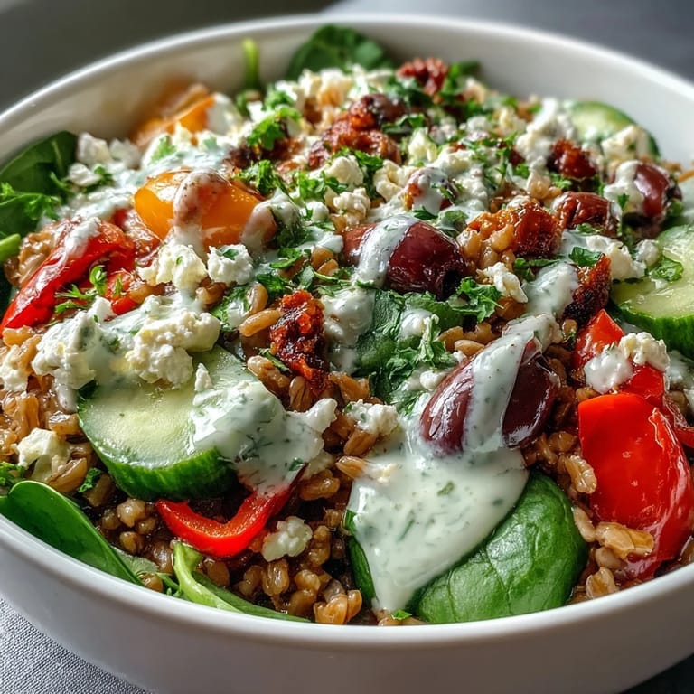 Save to Pinterest My neighbor brought over a bowl of this farro one Saturday afternoon, and I remember being struck by how the grain had this subtle chew to it, nothing like the mushy rice I was used to. She'd drizzled it with tahini dressing that tasted like sunshine and garlic, and I found myself asking for the recipe before I'd even finished eating. What started as a casual lunch became my go-to weeknight dinner, especially on days when I needed something that felt both comforting and alive on the plate.