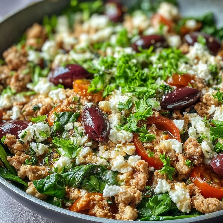 This recipe is forgiving and takes well to whatever you have on hand. Swap ground turkey or lamb for the chicken, use sun-dried tomatoes instead of fresh if you want intensity, or toss in artichoke hearts for more Mediterranean flair. If you're dairy-free, skip the feta and drizzle tahini over the top, or add a handful of toasted pine nuts for richness.