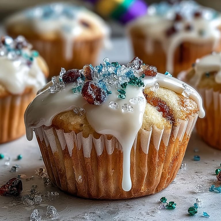 Save to Pinterest These Mini King Cake Cupcakes bring all the festive magic of New Orleans' most beloved Mardi Gras tradition into perfectly portioned, bite-sized treats. Inspired by the iconic King Cake with its swirls of cinnamon and vibrant purple, green, and gold sugar, these cupcakes capture the spirit of Carnival season in every delightful bite. Whether you're celebrating Fat Tuesday or simply craving a taste of the Big Easy, these tender, cinnamon-kissed cupcakes topped with sweet glaze and colorful sanding sugar are sure to bring joy to any gathering.