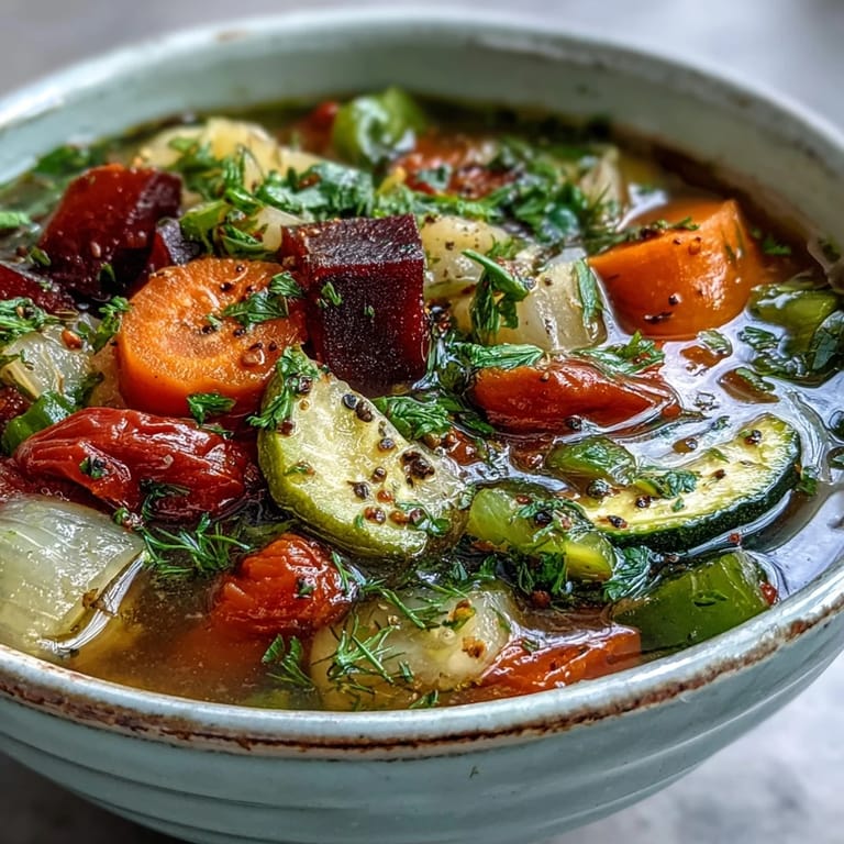 Save to Pinterest I discovered this soup on a grey afternoon when my kitchen felt too quiet and my energy had completely flatlined. My neighbor dropped off a bag of vegetables from her garden—beets still dusty with soil, carrots that smelled earthy and alive—and something just clicked. Within an hour, my pot was bubbling with the most vibrant colors, and the aroma alone made me feel like I'd already recovered.