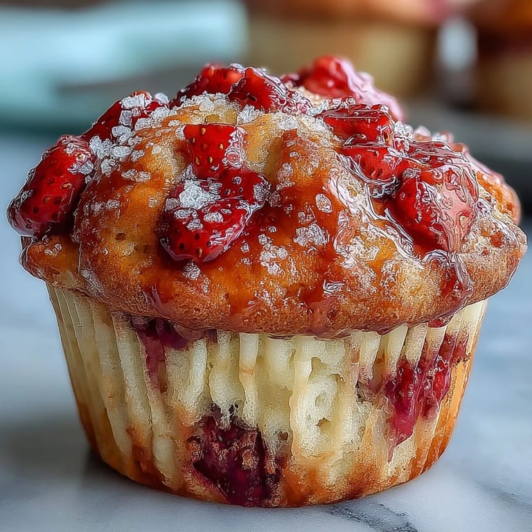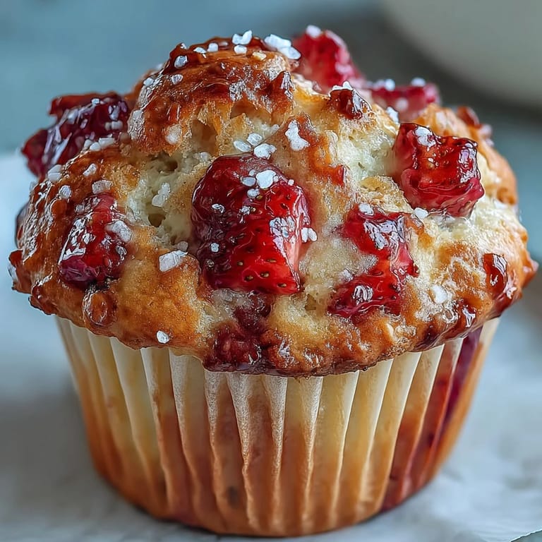 The secret to these muffins' incredible texture lies in the Greek yogurt, which adds moisture and a subtle tang that complements the sweetness of the strawberries beautifully. Tossing the diced strawberries in a bit of flour before folding them into the batter is a classic baker's trick that prevents them from sinking to the bottom, ensuring every muffin has an even distribution of fruit. The optional coarse sugar topping adds a delightful crunch that contrasts wonderfully with the soft, pillowy crumb inside.