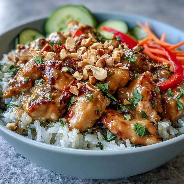 Save to Pinterest I discovered this bowl on a sweltering afternoon when my air conditioner decided to quit, and I desperately needed something that felt both comforting and light. A friend had just returned from Bangkok raving about a similar dish, so I started experimenting with what I had on hand, layering flavors until the kitchen smelled like a night market. What emerged was this Thai peanut chicken bowl, and somehow it became the thing I make when I want to feel transported without leaving my kitchen. The beauty of it is how forgiving it is, how the creamy sauce ties everything together, and how you can prep most of it while the rice cooks.