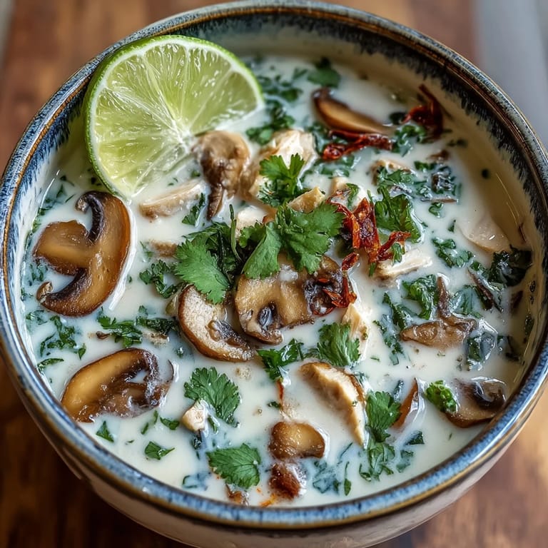 Save to Pinterest The first time I had Tom Kha was at a tiny Thai place tucked behind a laundromat. I remember the server warning me about the chilies, then watching me take that first sip and burst into the most wonderful sweat. Something about that creamy coconut hitting the sharp lime just rearranged my entire understanding of what soup could be.