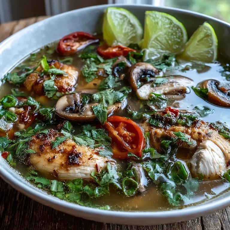Save to Pinterest The first time I tried Tom Yum, the steam alone cleared my head and woke up every sense in my body. It was a humid afternoon and I stumbled into a tiny shop that smelled of crushed lime and chili. Since then, I have spent countless weekends trying to replicate that specific electric hum of flavor. This chicken version is my favorite because it feels lighter and more comforting than the seafood classics.