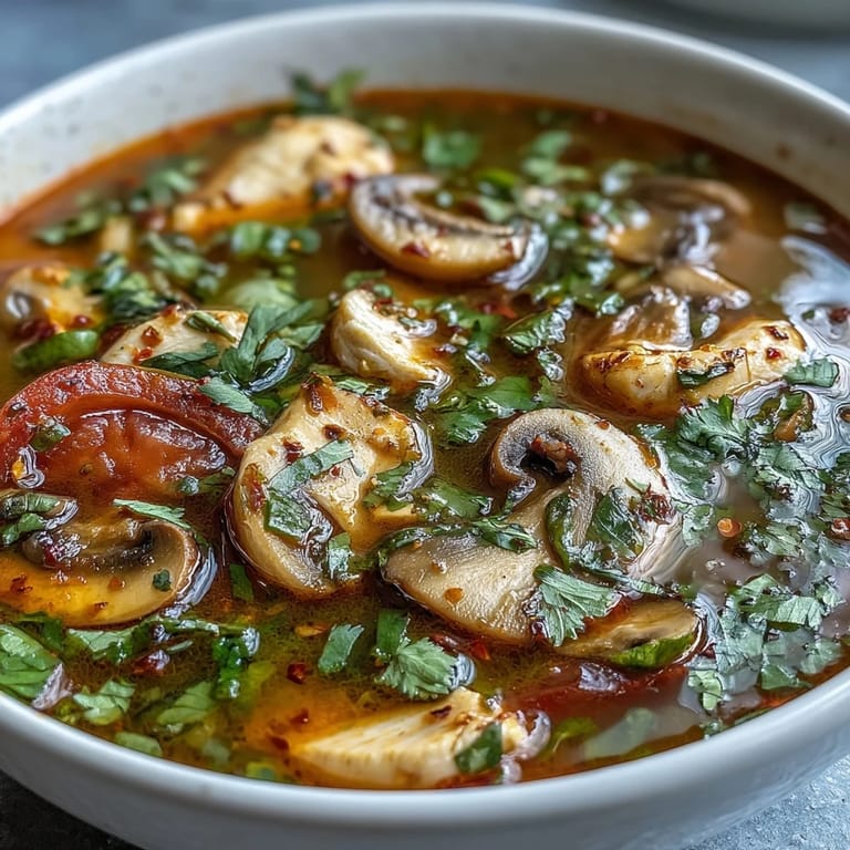 Enjoy as a starter or light main course. Pair with jasmine rice for a complete meal, or serve alongside other Thai dishes like pad thai or green curry. The soup also works wonderfully as a warming bowl on its own with crusty bread for soaking up the flavorful broth.