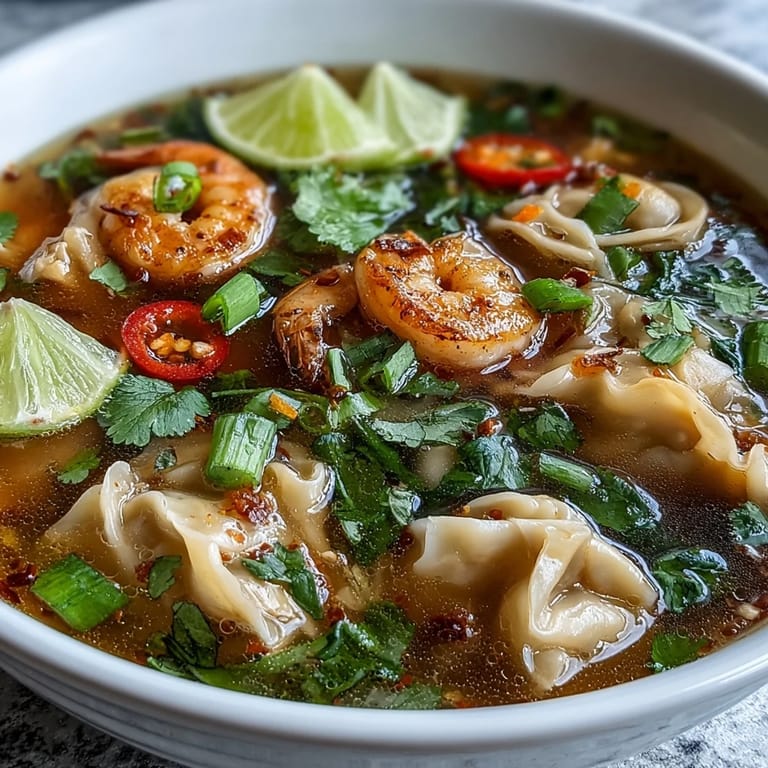 Save to Pinterest There's something profoundly satisfying about slurping hot, tangy soup filled with dumplings you folded yourself, especially when the weather is dreary or the world feels overwhelming. This recipe lives at the intersection of comfort and adventure, and I hope it finds a permanent spot in your kitchen too.