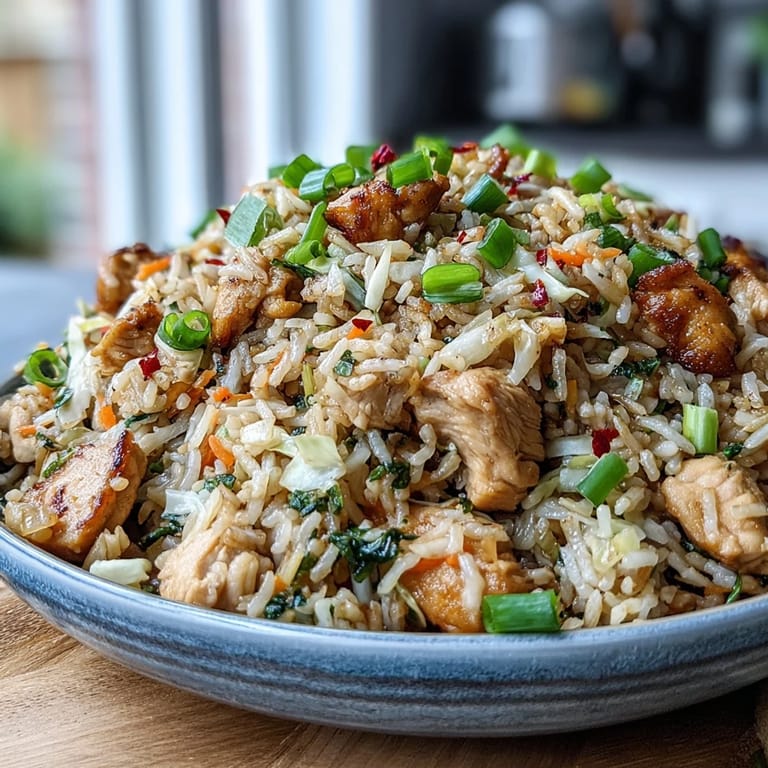 Save to Pinterest Craving the savory, crunchy essence of an egg roll but in a more satisfying meal format? This Egg Roll Fried Rice with Chicken is a brilliant fusion dish that brings the classic flavors of the beloved appetizer into a hearty stir-fry. With tender chicken, crisp vegetables, and aromatic ginger and garlic, it's a 30-minute weeknight solution that tastes like professional takeout made right in your own kitchen.